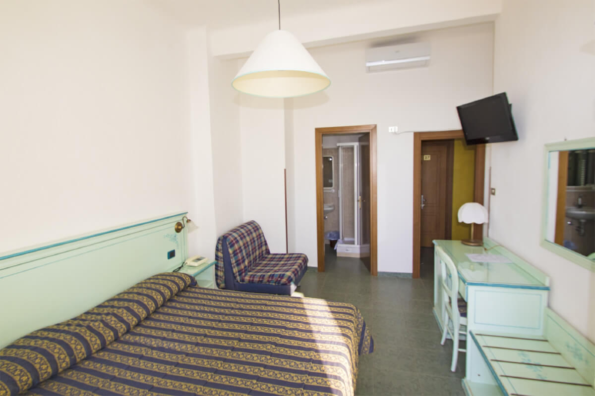 Les chambres triples sont composées d’un lit à deux places et d’un fauteuil convertible pour la troisième personne. Toutes sont dotées de salle de bain privée, douche, sèche-cheveux, air conditionnée, réfrigérateur, coffre-fort, télévision satellitaire et téléphone. Certaines disposent d’un balcon avec vue sur la baie des Cinq Terres.